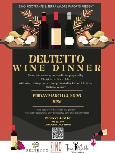 Saturday night at Vail Village hot spot La Nonna! Join us for a special evening of tasting flights & meet and greet with Deltetto Winemaker Carlo Deltetto.